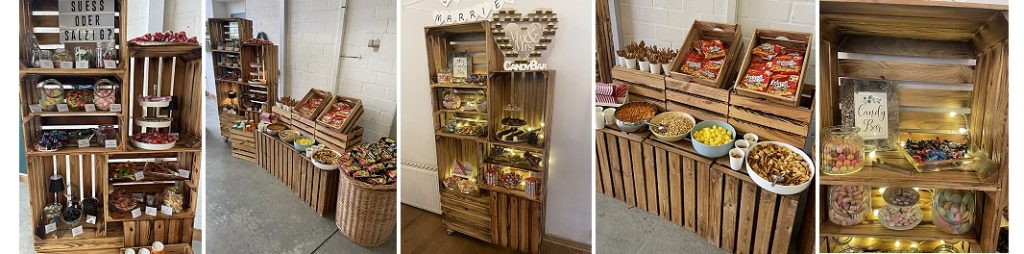 Ab sofort ist unser Candybar-Weinkistenregal mietbar!